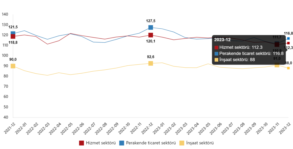 2023 Aralık inşaat sektörü güven endeksi, yüzde 3,3 azalarak 88 oldu.
