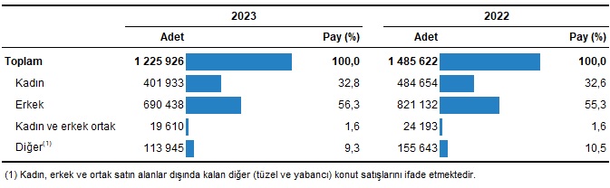 Türkiye genelinde 2023 yılında cinsiyete göre konut satışları;