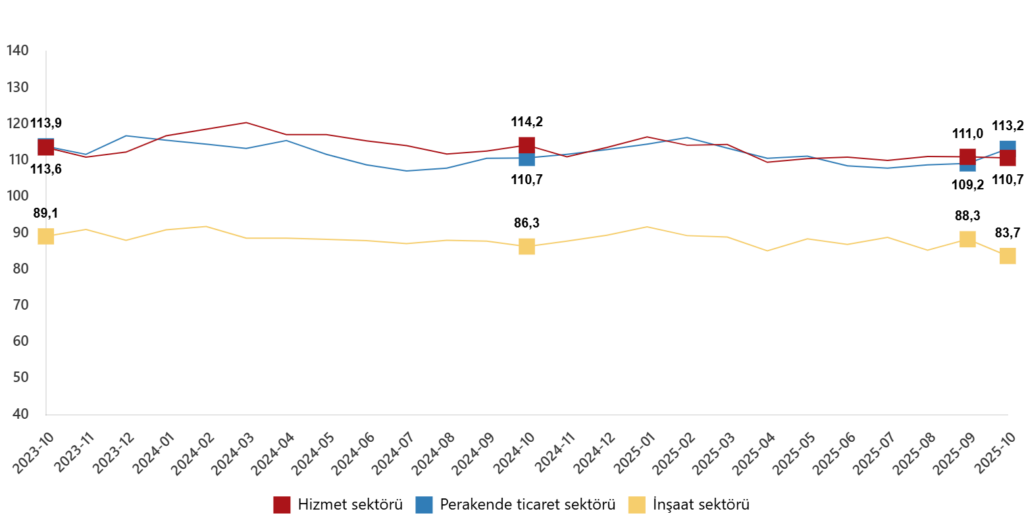 - inşaat sektöründe %5,3 oranında azalarak 83,7 değerini aldı.