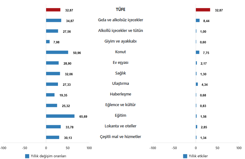 | Bir önceki yılın aynı ayına göre değişim oranı | 32,87 | 48,58 | 61,36 |