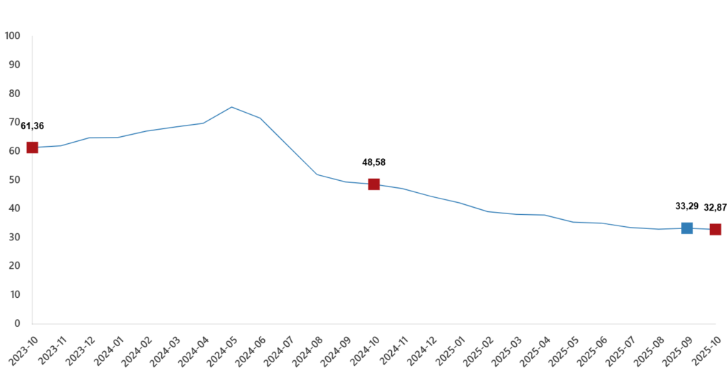 Tüketici Fiyat Endeksi (TÜFE) Ekim 2025’te yıllık yüzde 32,87 arttı