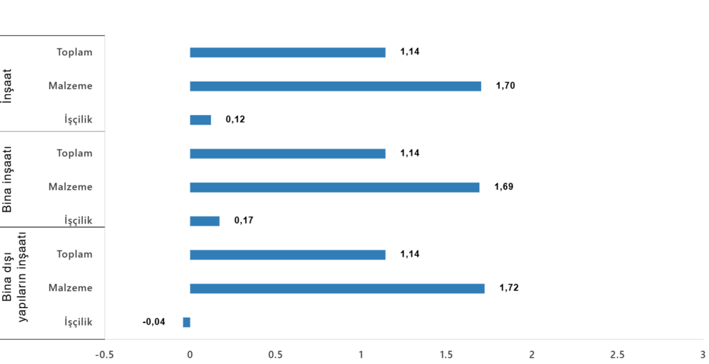 Bina dışı yapılar için inşaat maliyet endeksi, bir önceki aya göre yüzde 1,14 arttı, bir önceki yılın aynı ayına göre yüzde 25,33 arttı.