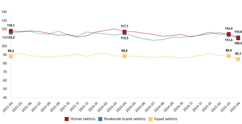 2025 Nisan inşaat sektörü güven endeksi yüzde 4,2 azalarak 85,1 oldu.