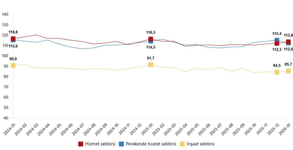 - inşaat sektöründe %1,5 oranında artarak 85,7 değerini aldı.