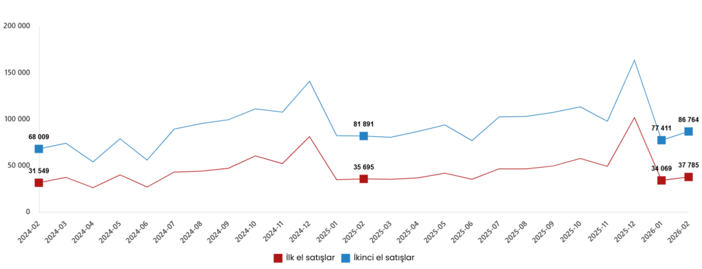 | İlk el satış | 37 785 | 35 695 | 5,9 | 71 854 | 70 478 | 2,0 |