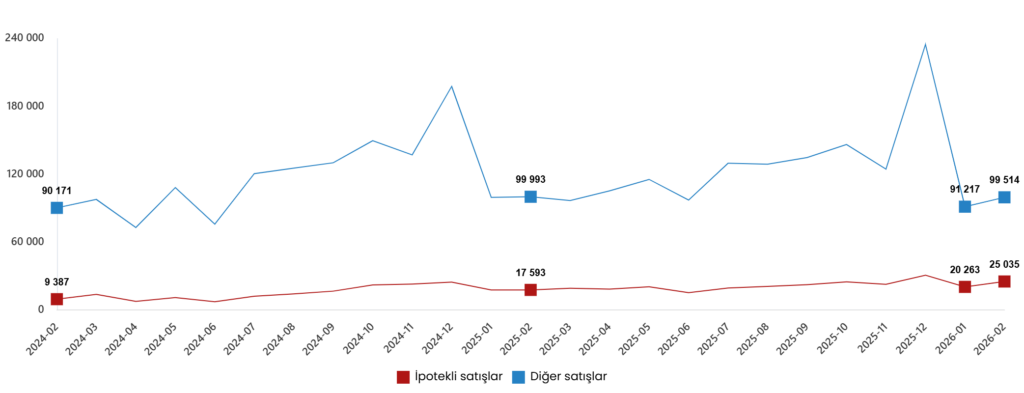 | İpotekli satış | 25 035 | 17 593 | 42,3 | 45 298 | 35 109 | 29,0 |