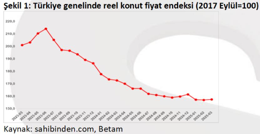 BETAM, sahibindex Satılık Konut Piyasası Görünümü 2025 Nisan raporunu paylaştı. Buna göre yıllık bazda reel fiyatlarda negatif seyir sürüyor.