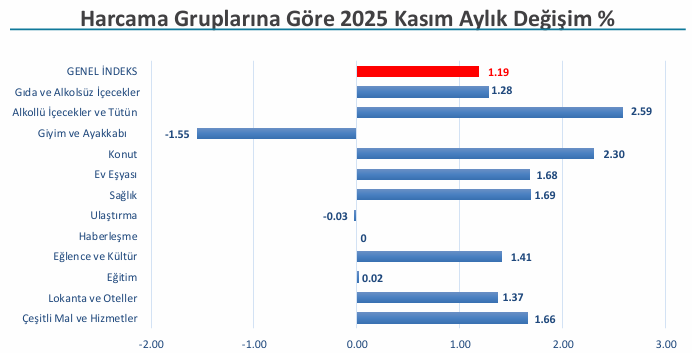 - Alkollü İçecekler ve Tütün harcama grubunda yüzde 2,59,