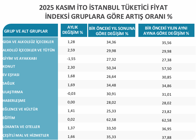 İTO, İstanbul Tüketici Fiyat İndeksi 2025 Kasım Basın Bültenini yayınladı