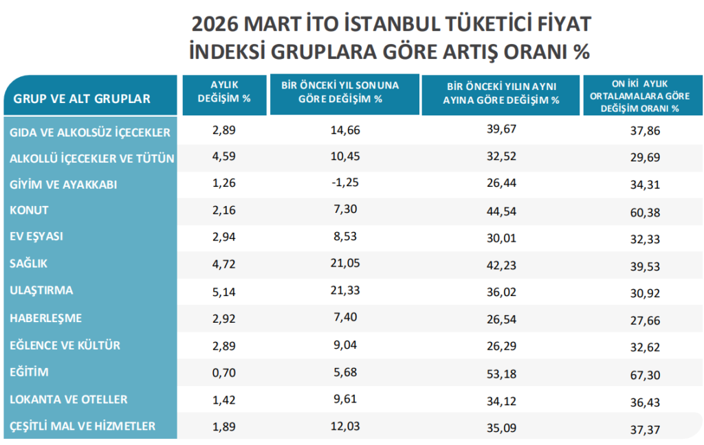 İTO, İstanbul Tüketici Fiyat İndeksi 2026 Mart Basın Bültenini yayınladıİ