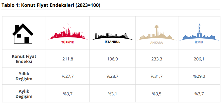 Not; Konut Fiyat Endeksi Resmi İstatistik Programı (RİP) kapsamında yayımlanmaktadır.