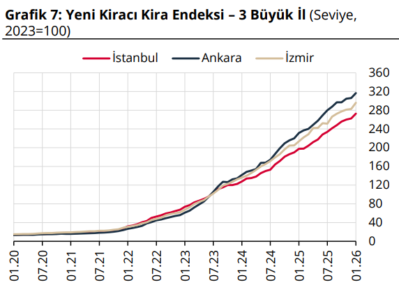 YKKE 2026 yılı Ocak ayında, İstanbul, Ankara ve İzmir’de bir önceki aya göre;