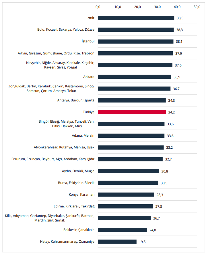 - İzmir’de yüzde 38,5 şeklinde olmuştur.