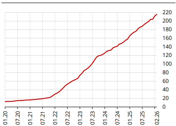 Konutların kalite etkisinden arındırılmış fiyat değişimlerini izlemek için hesaplanan KFE, 2026 yılının Şubat ayı itibariyle, bir önceki aya göre yüzde 1,8 oranında artış göstererek 215,5 seviyesine ulaşmıştır.