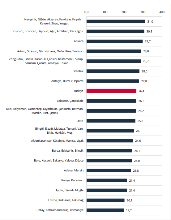 - İzmir’de yüzde 25,8 şeklinde olmuştur.