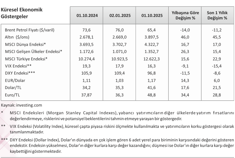 Küresel borsalar ise temkinli iyimserliğin hakim olduğu bir seyir izlemiştir. 2025 yılı üçüncü çeyreğinde