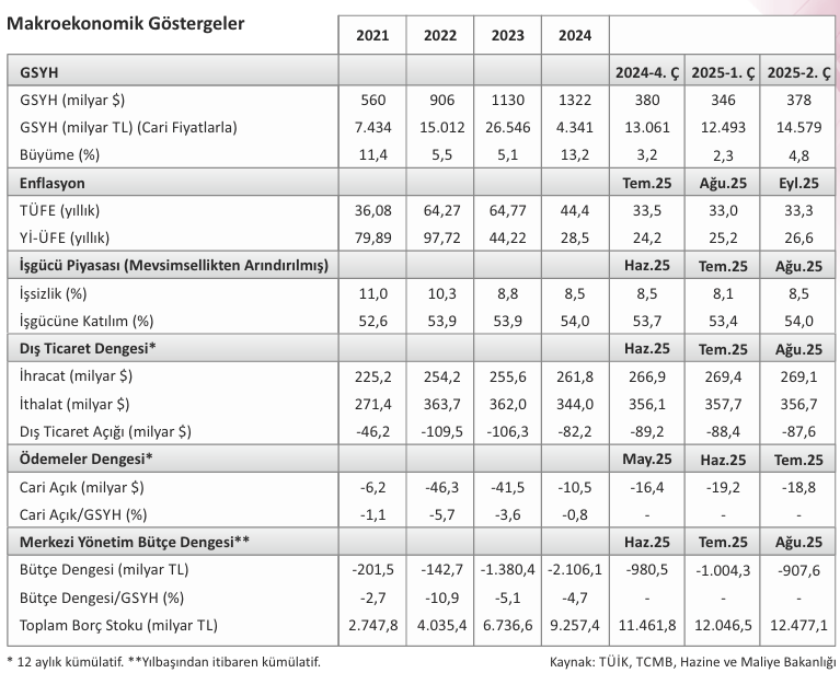 2025 yılı Eylül ayında TÜFE aylık bazda %3,23 ile piyasa beklentilerinin üzerinde artarken, yıllık TÜFE enflasyonu %33,29 düzeyine yükselmiştir. Aynı dönemde, yurt içi ÜFE aylık bazda %2,52, yıllık bazda %26,59 olarak gerçekleşmiştir.