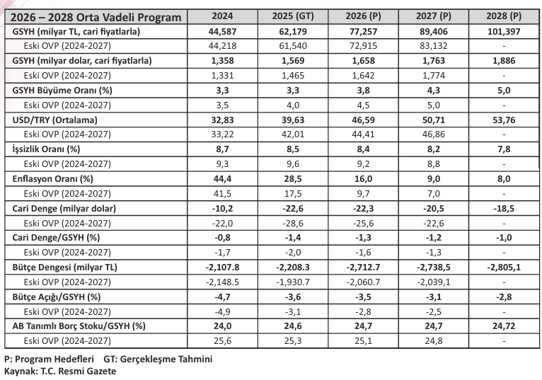 Bu dönemin en önemli politika belgesi olan 2026–2028 Orta Vadeli Program (OVP), Türkiye’nin “denge” arayışının yol haritasını çizmiştir. Programda fiyat istikrarı, mali disiplin ve yapısal dönüşüm ana hedefler olarak belirlenmiştir.