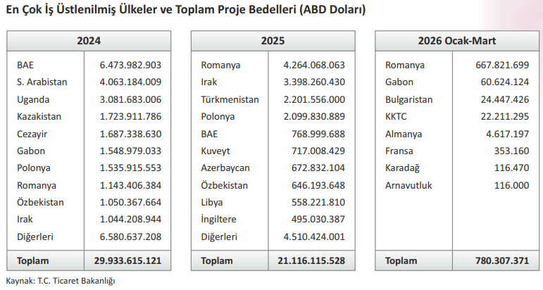 Öte yandan, Türk müteahhitlik hizmetleri, 2026 yılı itibarıyla yurt dışı pazarlarda stratejik bir güç merkezi