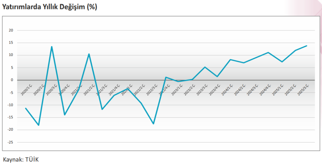 Öte yandan, 2025 yılı üçüncü döneminde zincirlenmiş hacim endeksine göre gayrisafi sabit sermaye