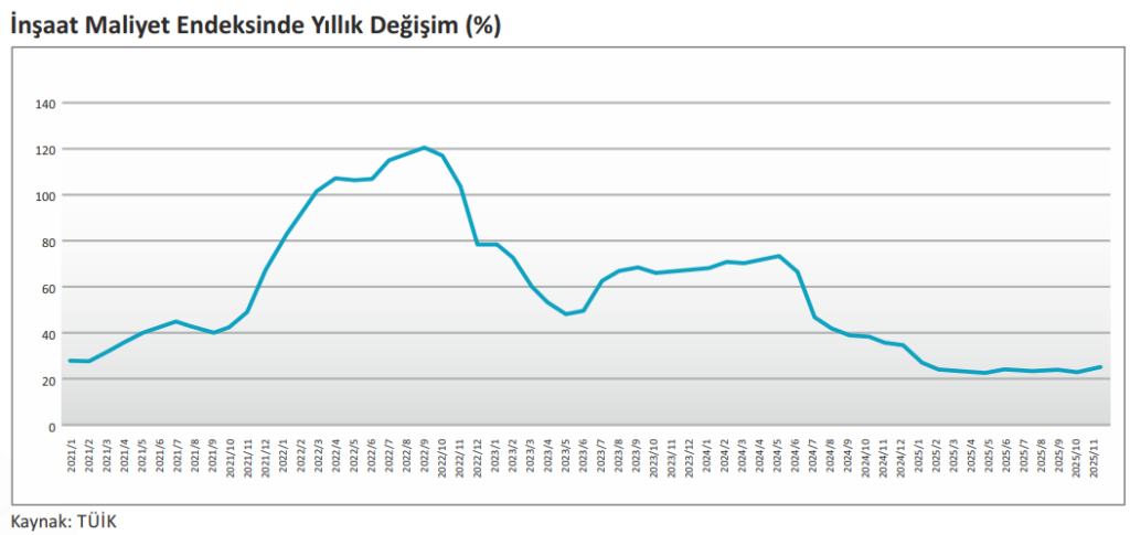 TÜİK tarafından açıklanan İnşaat Maliyet Endeksi verilerine göre malzeme ve işçilik maliyetlerindeki artış